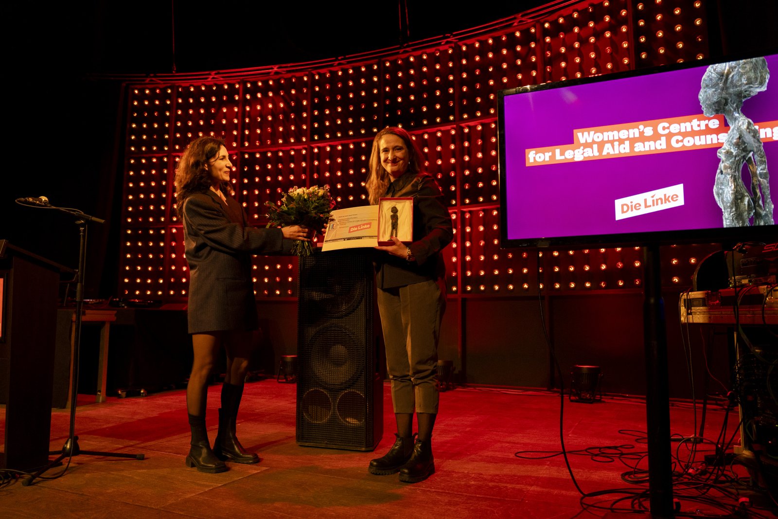 Der Clara-Zetkin-Preis 2026 ging schließlich an das Women's Centre for Legal Aid and Counselling. Mit einer bewegenden Videobotschaft bedankten sich die Genoss*innen des Projekts aus Palästina für die Ehrung und das Preisgeld von 2.500 Euro. Ihre Arbeit für die Rechte von Frauen und Mädchen in einem der gefährlichsten und politisch herausforderndsten Gebiete der Welt ist ein leuchtendes Beispiel für feministische Solidarität und Widerstand.