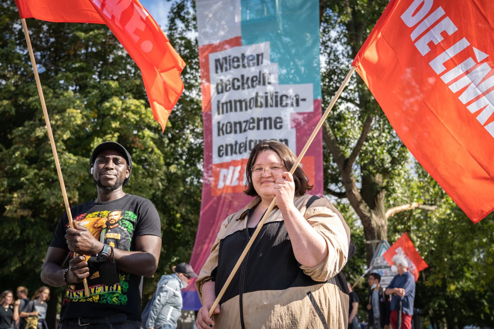 3. Unser Wahlkampf war nahezu komplett auf soziale Themen ausgerichtet. Wer öffentlich das Gegenteil behauptet, hat irgendeine Rechnung zu begleichen, die auf Kosten der Partei gehen muss. Die Themen und Forderungen waren solide, haben den Konsens nach vorne gestellt. Rückblickend kann man aber feststellen, dass unsere Kampagne nicht geeignet war, sich von der inhaltlich wie gestalterisch guten Kampagne der SPD abzusetzen. Ein expliziteres Plakat zur Klimagerechtigkeit oder das klarere Aufzeigen von Alternativen, die an die Eigentumsverhältnisse rangehen, wären schön gewesen – ob es aber auch zu besseren Ergebnissen geführt hätte, weiß ich nicht. Auch warum mehr Radikalität bei den Forderungen schwankende Wähler:innen überzeugt hätte, uns statt Grüne oder SPD zu wählen, leuchtet nicht direkt ein. (Was nicht heißt, dass es nicht trotzdem zum Teil richtig sein kann, wir sollten nur nicht so tun, als wäre das die Lösung unserer Probleme.)