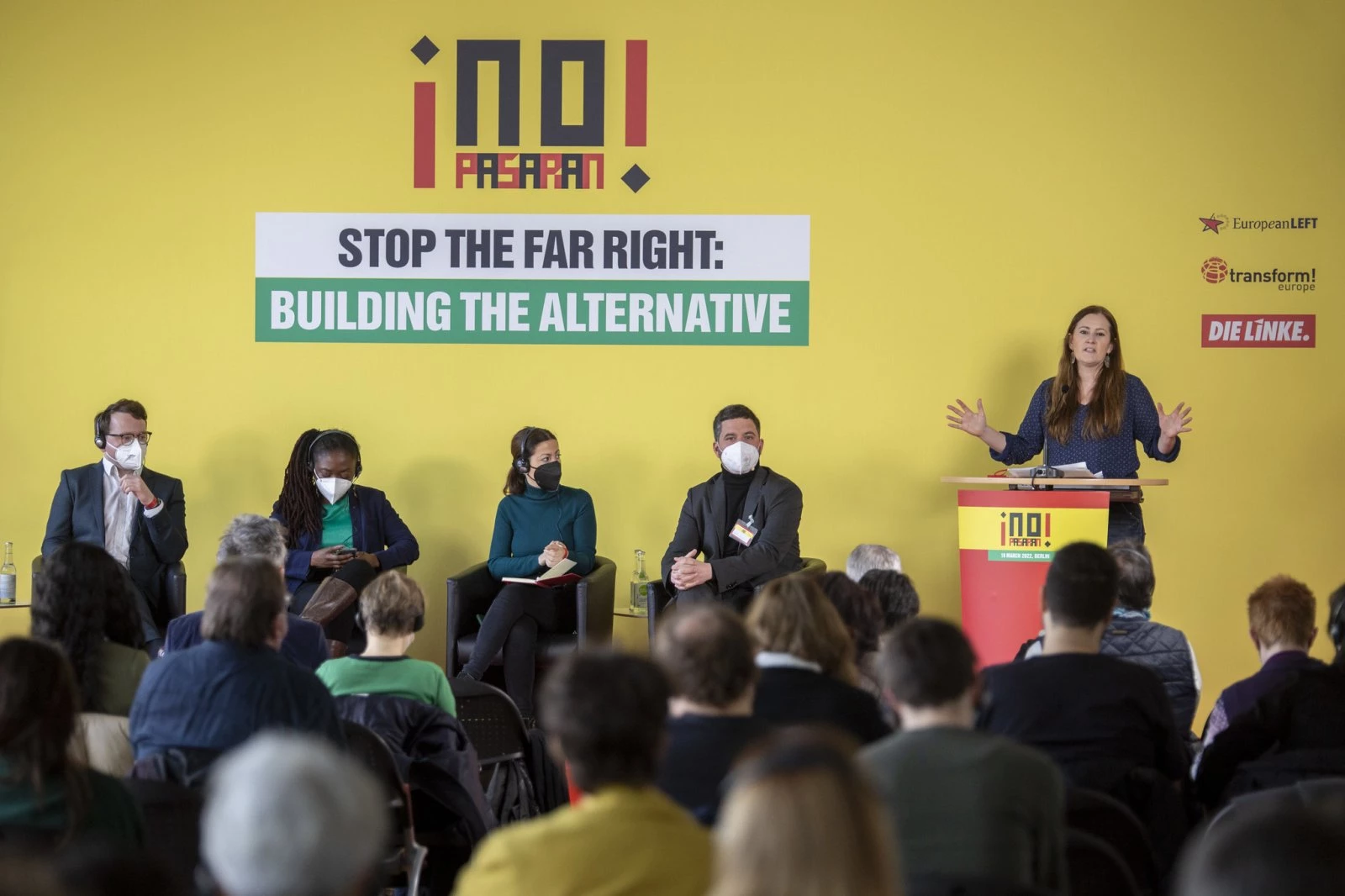 Veranstaltet wurde „No Pasarán“ von der Partei der Europäischen Linken, der Partei DIE LINKE sowie von der Stiftung transfrom!Europe. Eingeladen waren Vertreter*innen linker Parteien, von Gewerkschaften und sozialen Bewegungen sowie Mitglieder antifaschistischer Initiativen. Ziel der Konferenz war es zum einen, ein radikales linkes Gegennarrativ zur rechtsextremen Manipulation von ineinandergreifenden Krisen zu fördern und eine stärkere europaweite Mobilisierung gegen Rechts zu erreichen. Zum anderen ging es den Teilnehmer*innen darum, gemeinsam Strategien gegen die extreme Rechte zu beraten sowie Ideen für eine friedliche, gerechte und solidarische Welt zu entwickeln. Die Konferenz war zudem eine gute Möglichkeit, Einblicke in den politischen Kampf der teilnehmenden Aktivisten und Organisationen zu gewinnen und sich über Erfahrungen, Analysen und Strategien auszutauschen – und dadurch die Einheit der Linken und der progressiven Bewegungen in Europa zu stärken. Und ganz nebenbei: Nach den unzähligen Videokonferenzen der vergangenen Monate war die Konferenz in Berlin für alle auch ein schönes Erlebnis, weil man sich wieder einmal persönlich begrüßen, in den Arm nehmen und auf Erreichtes und vor uns Liegendes das Glas erheben konnte.