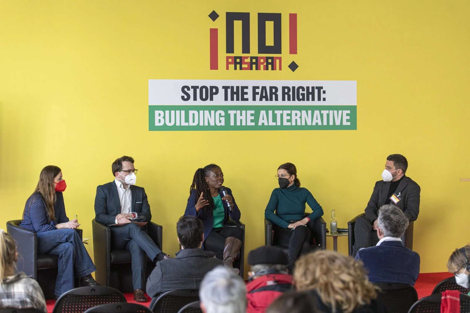 Trotz der noch geltenden Corona-Regeln für Veranstaltungen war der Saal im FMP1-Gebäude gut gefüllt. Zählt man die Online-Zuschaltungen hinzu, verfolgten über 300 Interessierte und Aktivisten die antifaschistische Konferenz „¡No Pasarán! Stop the far right: Building the Alternative“ am 19. März 2022 in Berlin.
