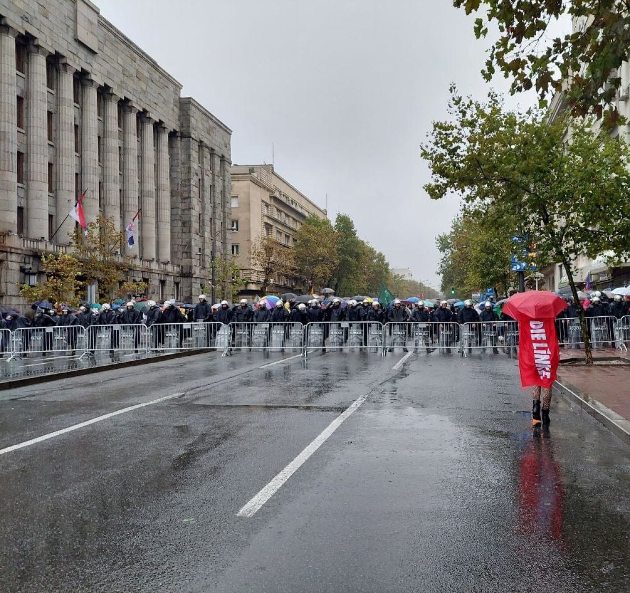 Und so verkündete die serbische Premierministerin Ana Brnabić - selbst lesbisch – wenige Stunden vor dem Demozug, dass der Protest stattfinden könne und man die Sicherheit aller Anwesenden garantiere. Die Vielstimmigkeit der Regierung war Teil eines „Guter Bulle, böser Bulle“-Spiels, das wohl hauptsächlich dazu diente, den Protest durch größtmögliche Unsicherheit und das Stiften von Verwirrung kleinzuhalten. So hatte im Nachgang dann auch jeder seine eigene Interpretation der Geschehnisse: Das Innenministerium etwa sprach davon, dass das polizeiliche Verbot der Pride durchgesetzt wurde und man lediglich eine kleine Menschenansammlung unter Polizeischutz zu einem Konzert eskortiert hätte.