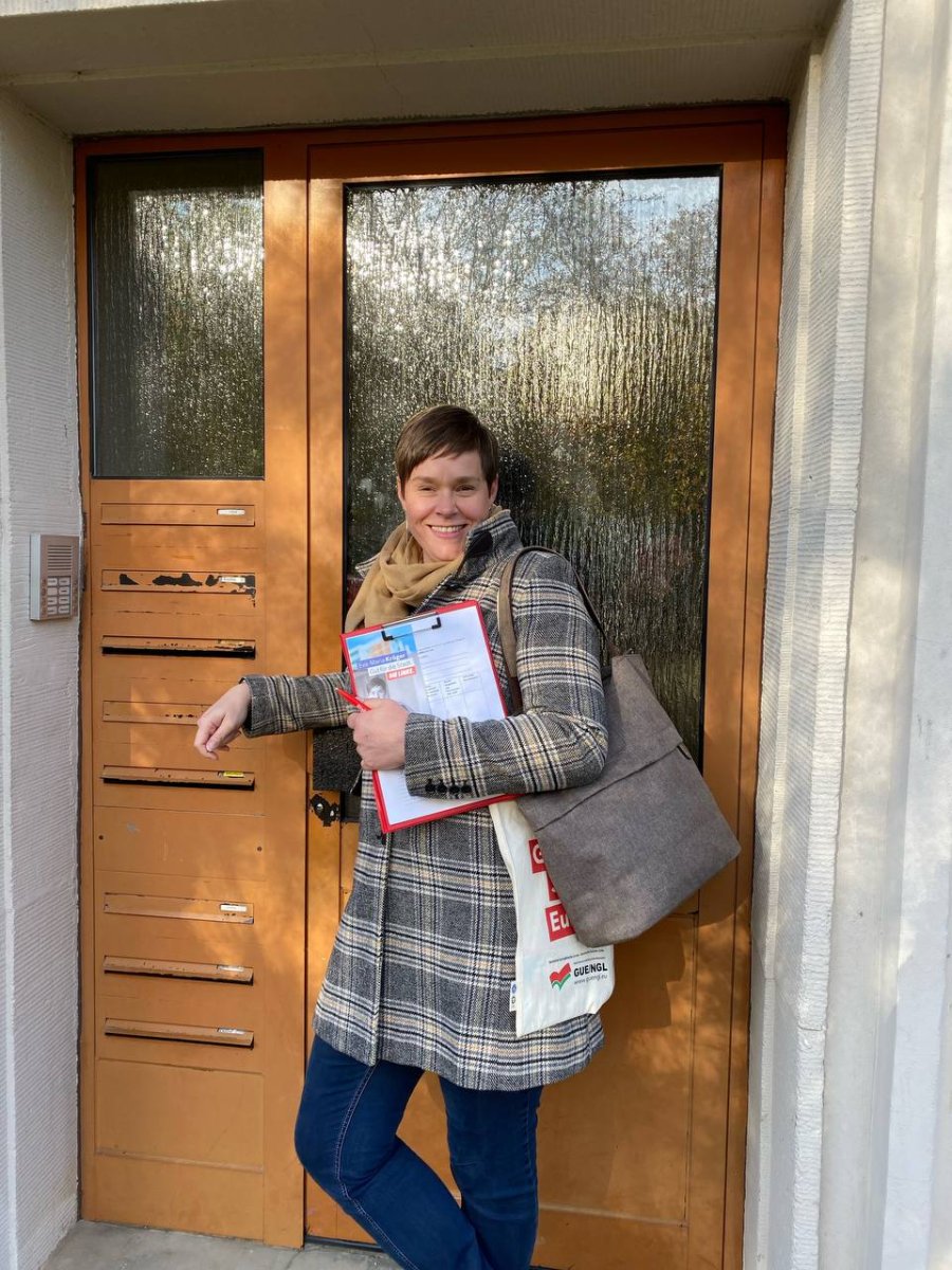 Bis zur Wahl am 13.11.2022 klingelten wir an 4.000 Türen. Eva war so oft es ging dabei, sagte für die Gespräche andere Termine ab und konnte ihre Erlebnisse für andere Wahlkampfveranstaltungen nutzen. Weitere fünf Abgeordnete der Landtagsfraktion nutzten die Gelegenheit, an die Türen zu gehen. Sie klopften an knapp 600 Türen, hörten den Nachbar*innen zu und warben für Eva.